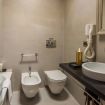 2 Stylish bathrooms with bathtub with shower, bidet and hairdryers