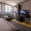 Entrance & Living room with double sofabed, TV SAT, Rooftop view